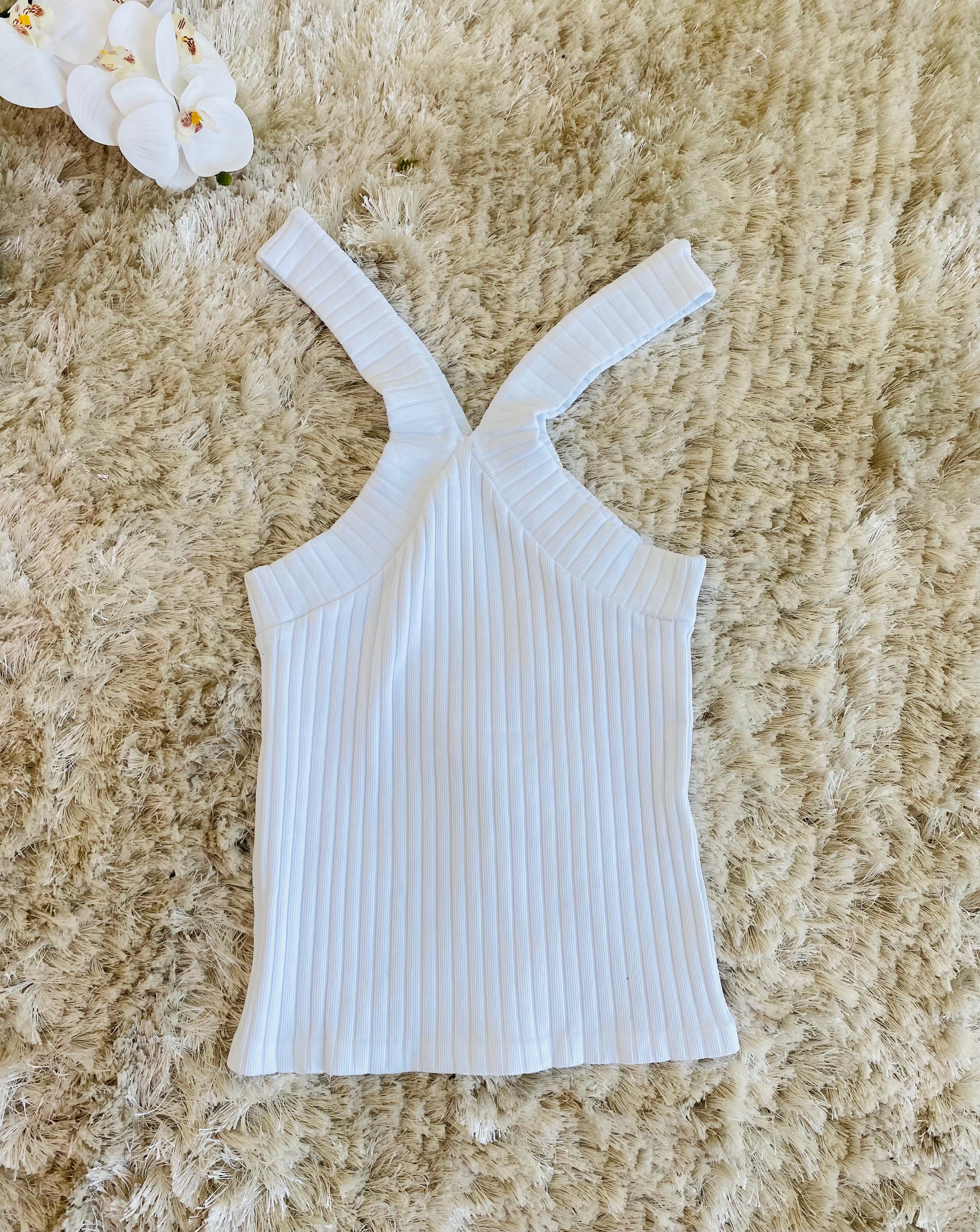 Cross Neck sweater knit tank.