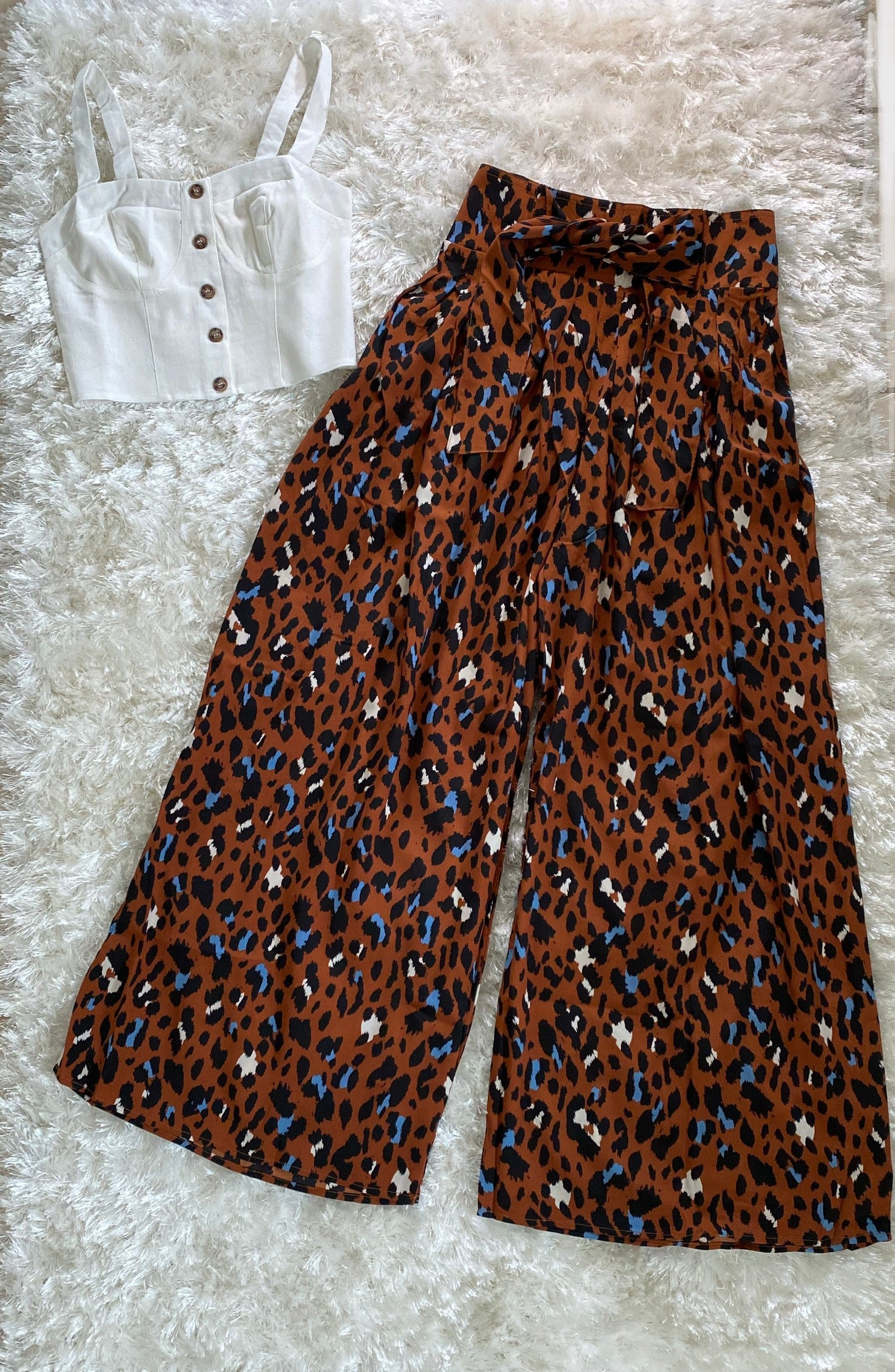 100% polyester. Wide-leg with high-rise and tied front detail.