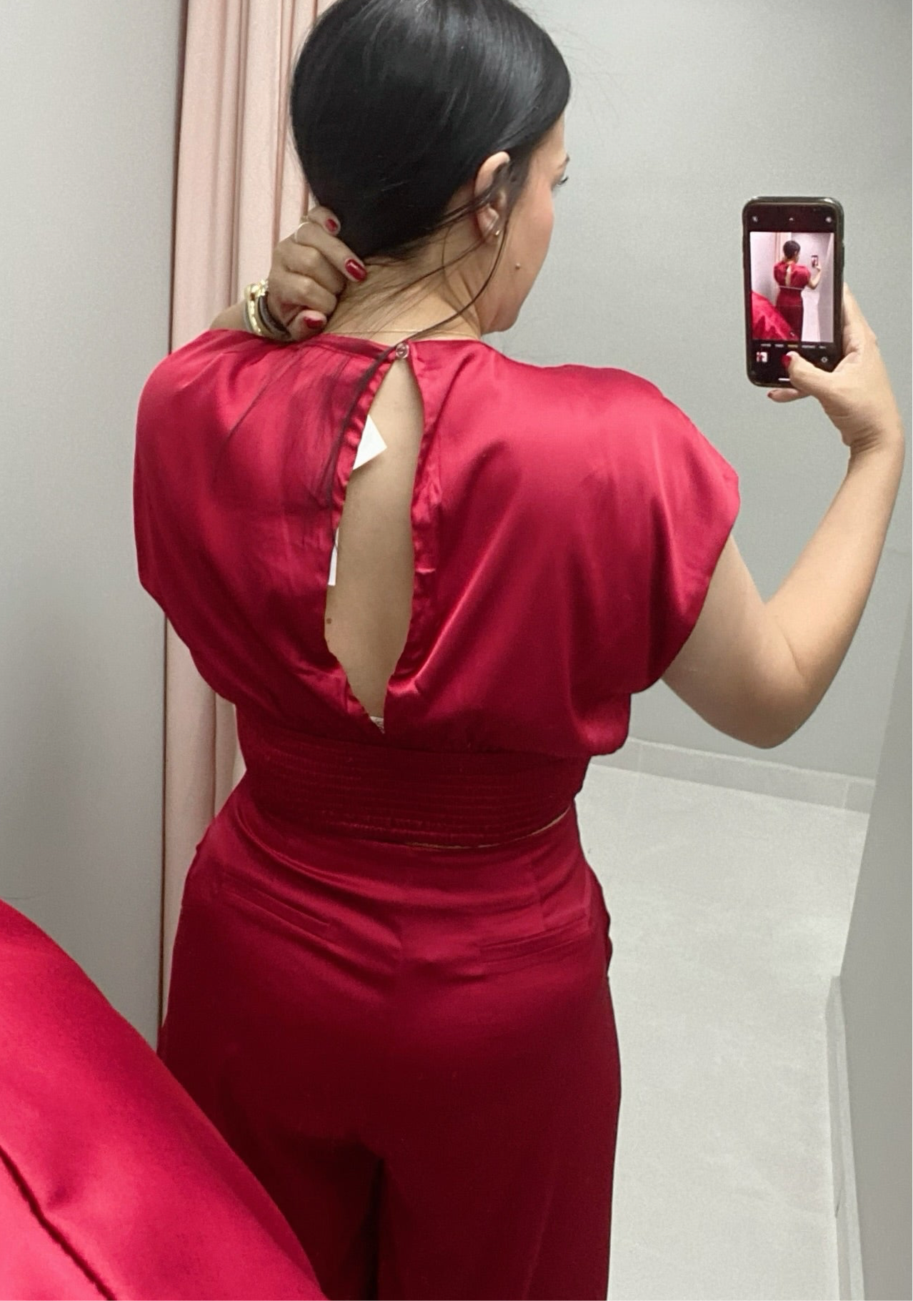 -V-NECK DOLMAN SLEEVE TOP, smocked back