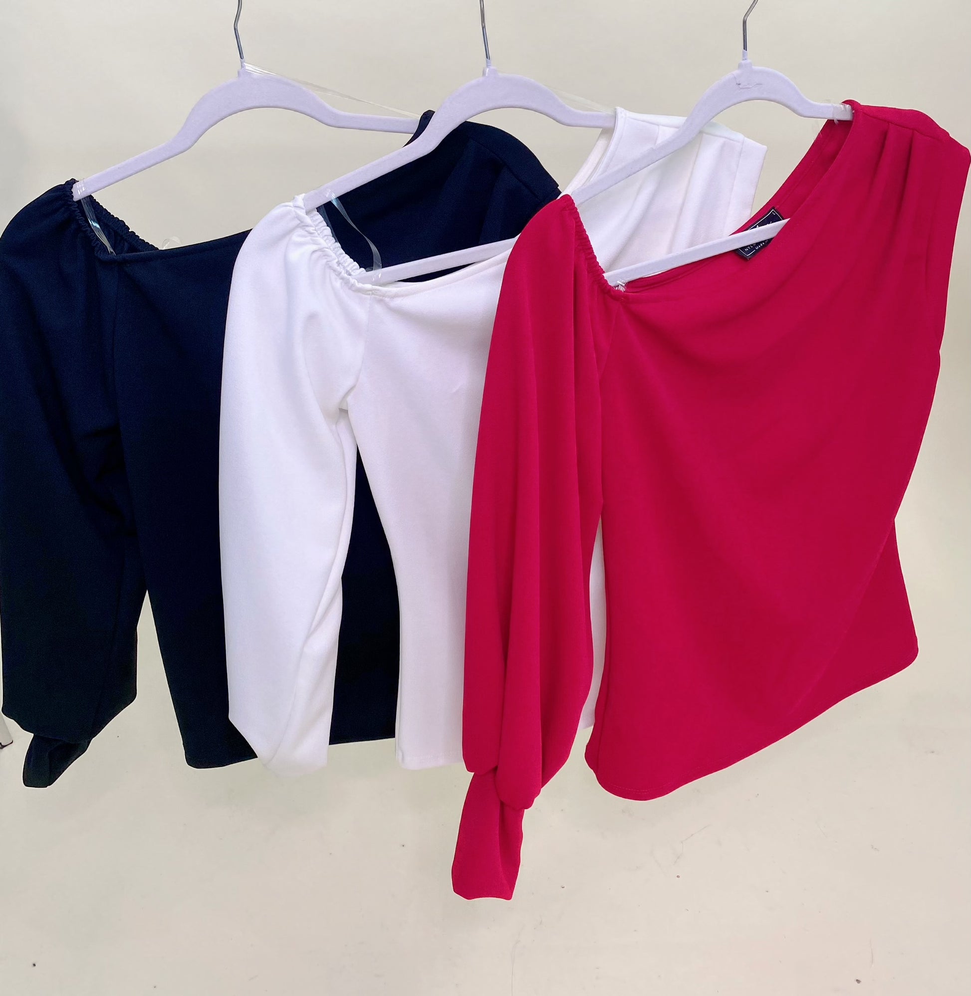 Asymmetrical and off shoulder top.