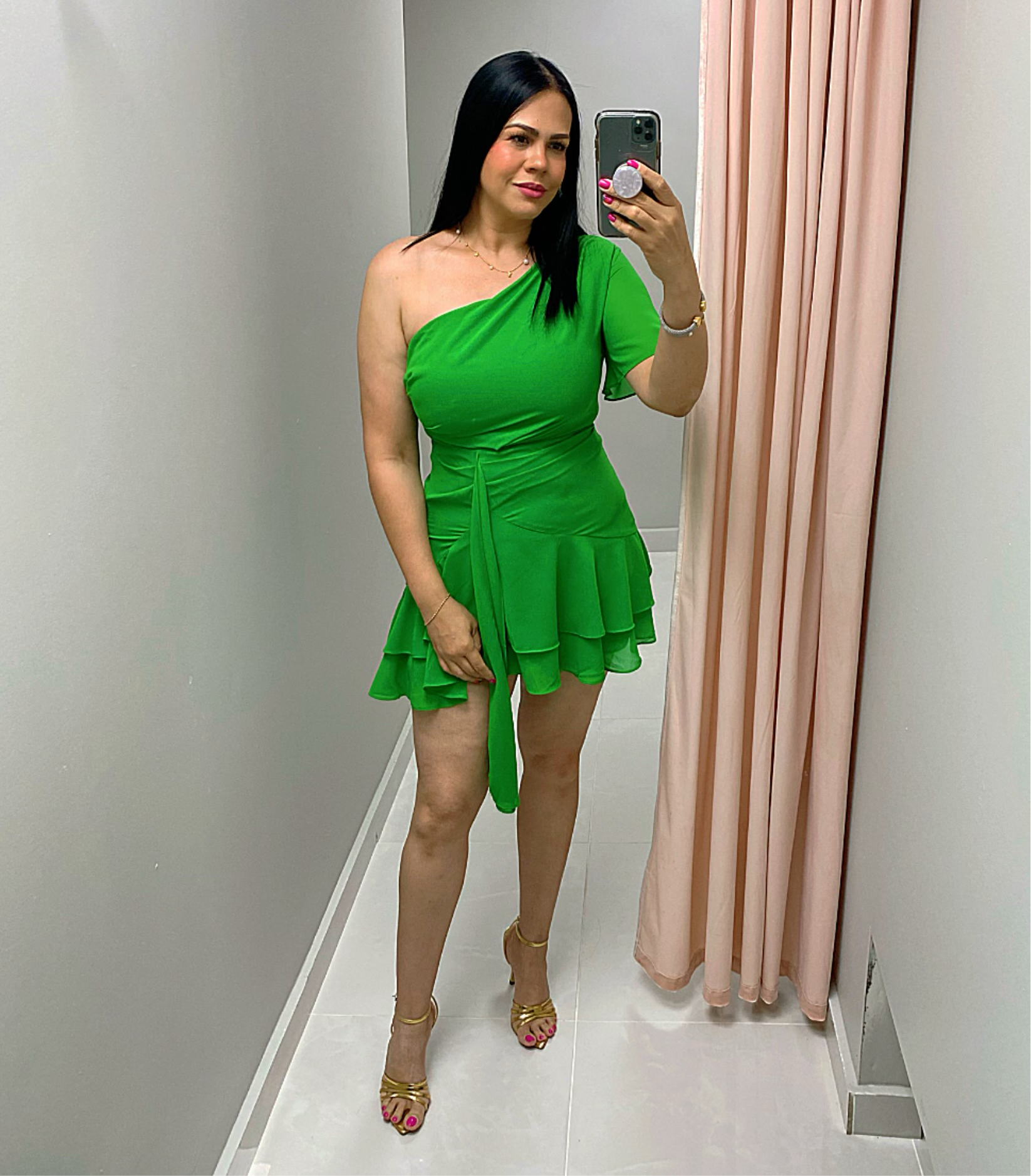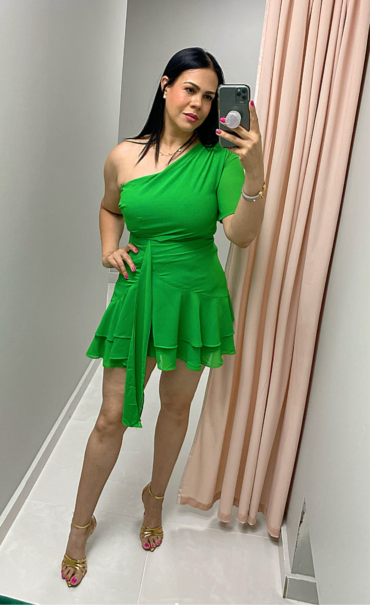 One Shoulder Green Dress